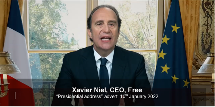 - Here’s a high-wire act of public communications. Xavier Niel is the CEO of French telecoms business Free. And with a presidential election looming, he has made an advert in which he pretends to be the nation’s leader.