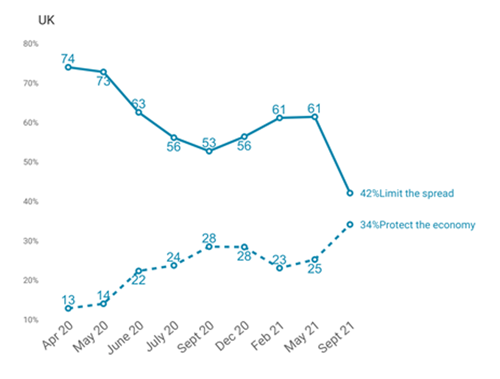 - British public increasingly prioritising the economy over controlling COVID-19.